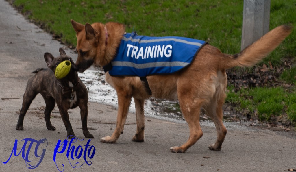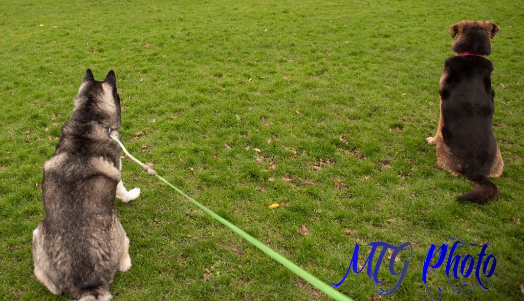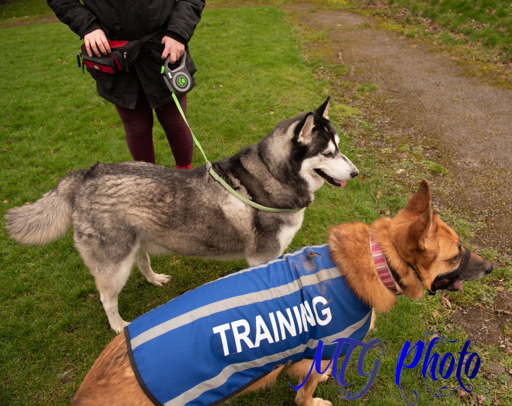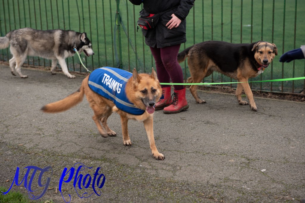 Today Sammy had another session with her trainer, Shenanigans with Shadow, and her favourite four legged friends Shadow (the husky) and Calypso ( malamute X Rottweiler X German shepherd). Sammy was allowed off lead to play and learned a lot from Calypso, her recall was fantastic and we are really proud of how far shes come in just 5 weeks. Sammy enjoyed the freedom of being off lead all around the park
